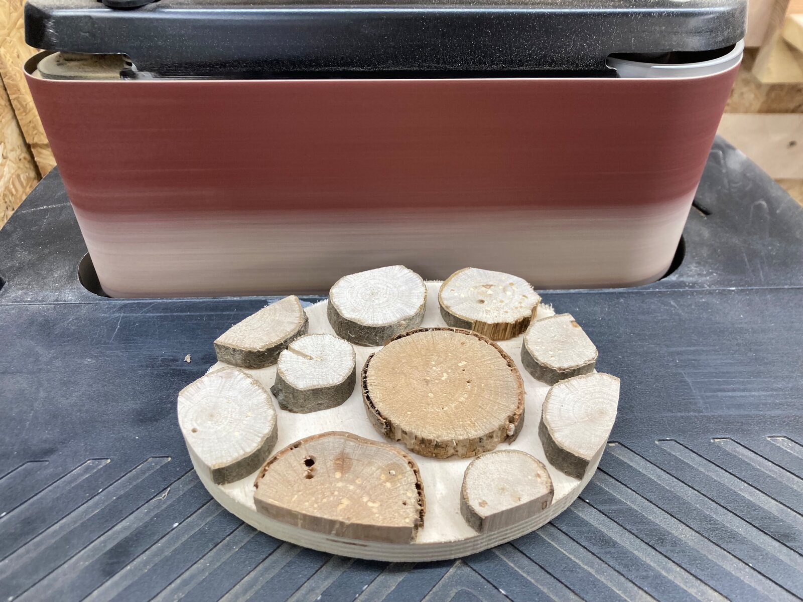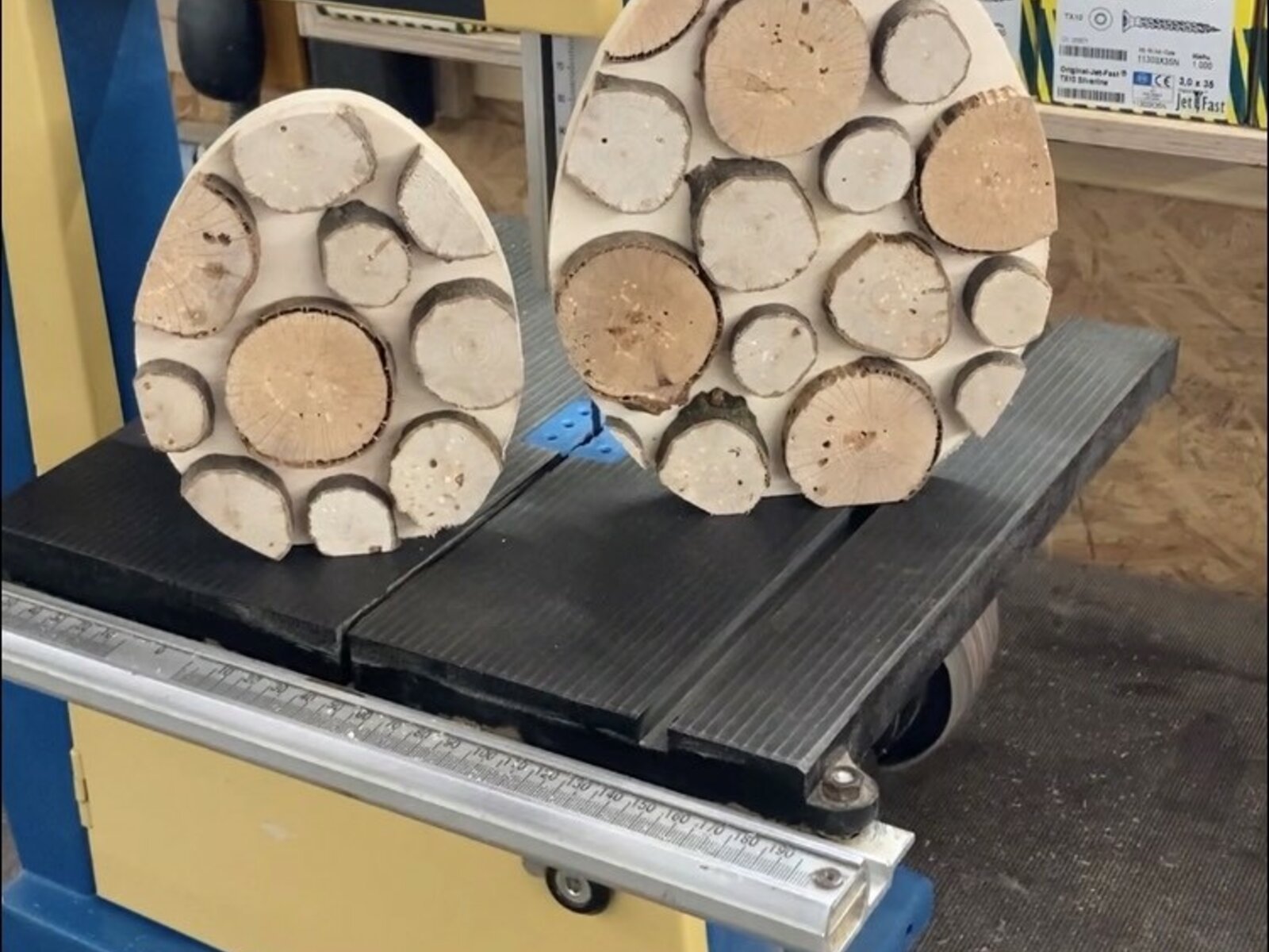 - Schritt 1 – Ostereier: Holzscheiben ablängen & Schleifen