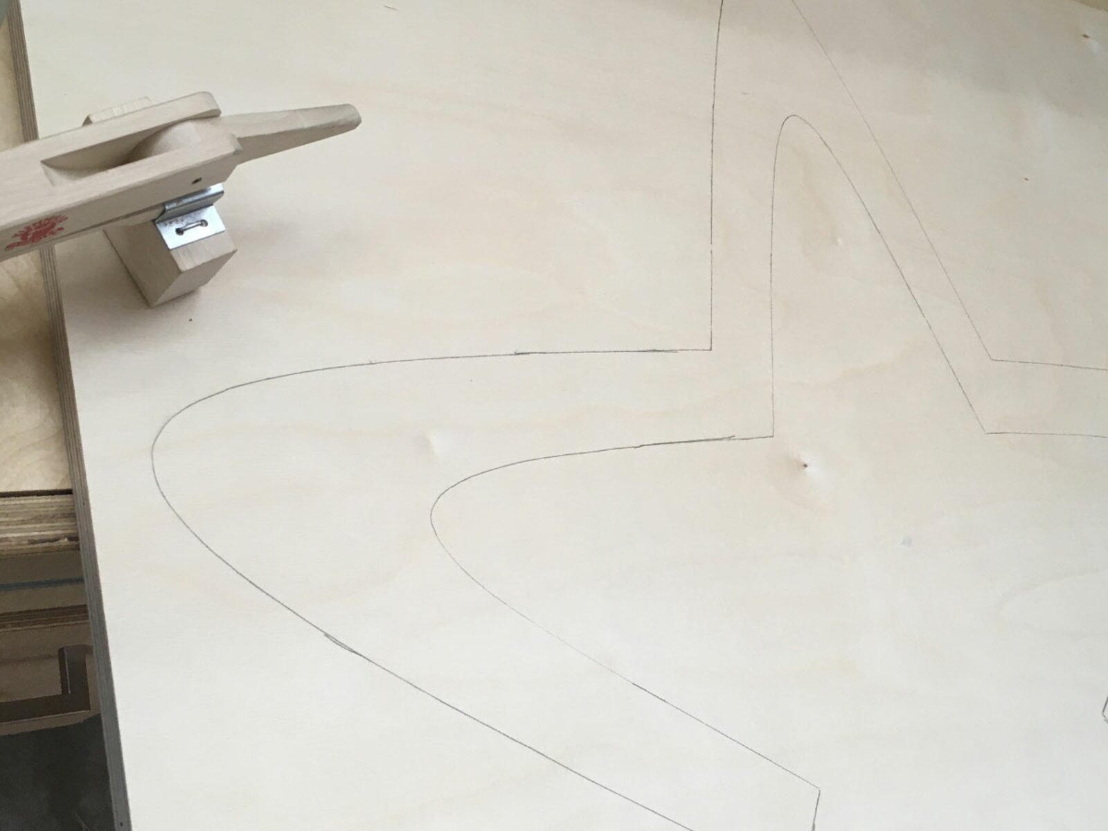 Nachdem jetzt alles sauber übertragen wurde, können wir uns daran machen, die Form so genau wie möglich auszusägen. Meine Wahl fiel hier auf die Stichsäge, was auch super funktioniert hat. Hier zahlen sich Geduld und Genauigkeit aus, denn je besser wir hier sind, umso weniger Schleifarbeiten haben wir. Es empfiehlt sich die Platte fest zu zwingen, damit fällt einem das Sägen deutlich leichter.