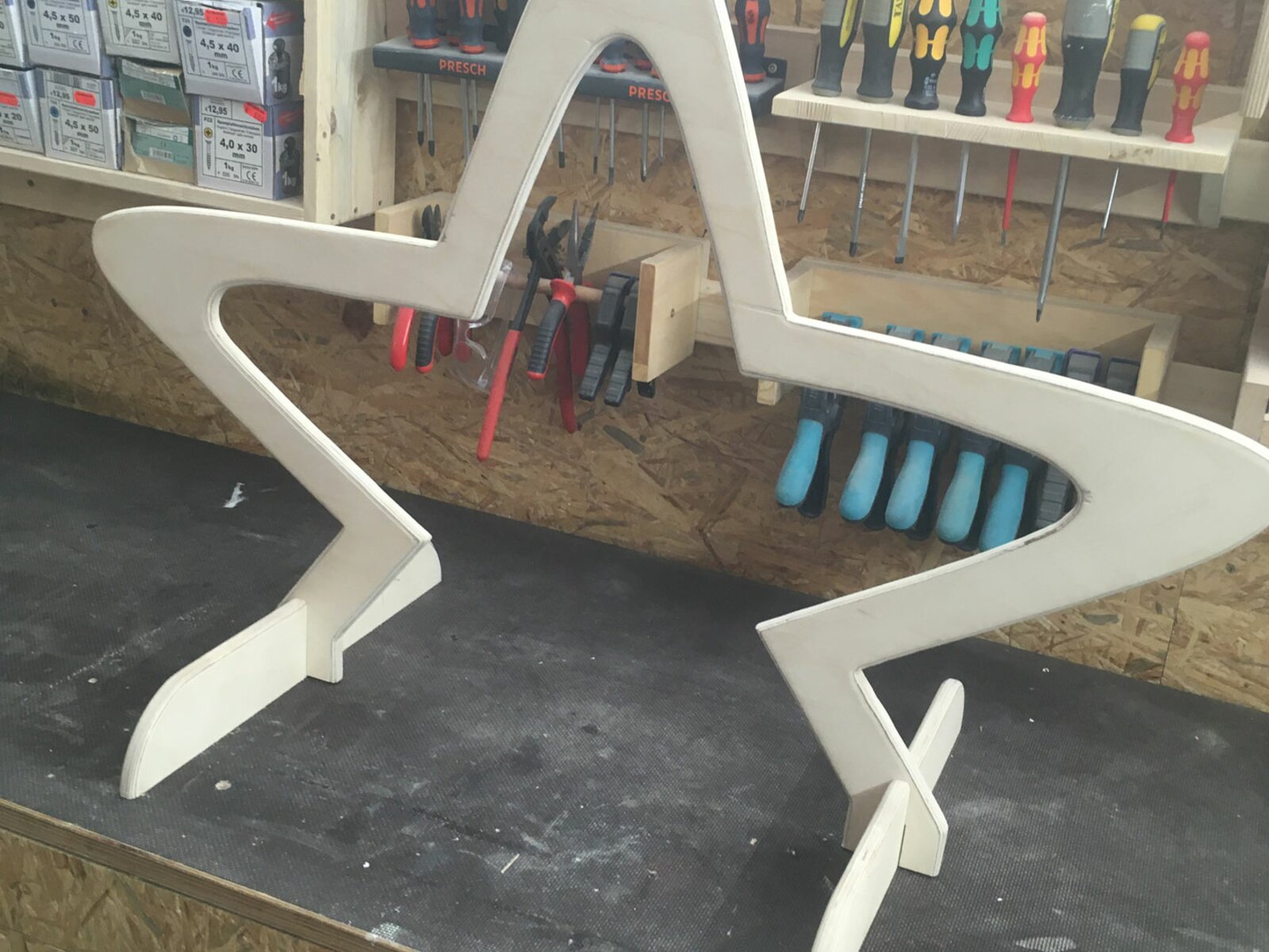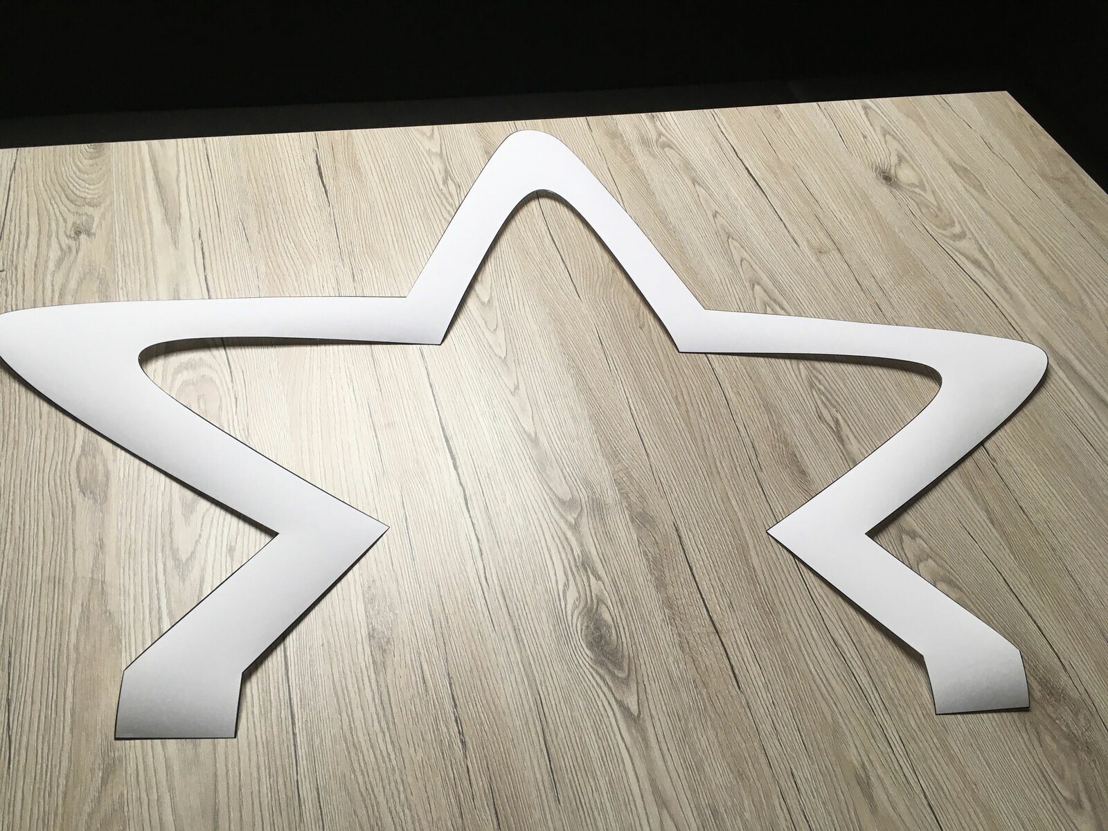 Als allererstes nehmen wir die Schablone und übertragen sie auf unsere Multiplexplatte. Kleiner Tipp, viele Werbeagenturen bieten den Druck der Schablone für kleines Geld an. Alternativ macht sowas in der Regel auch ein Copyshop.