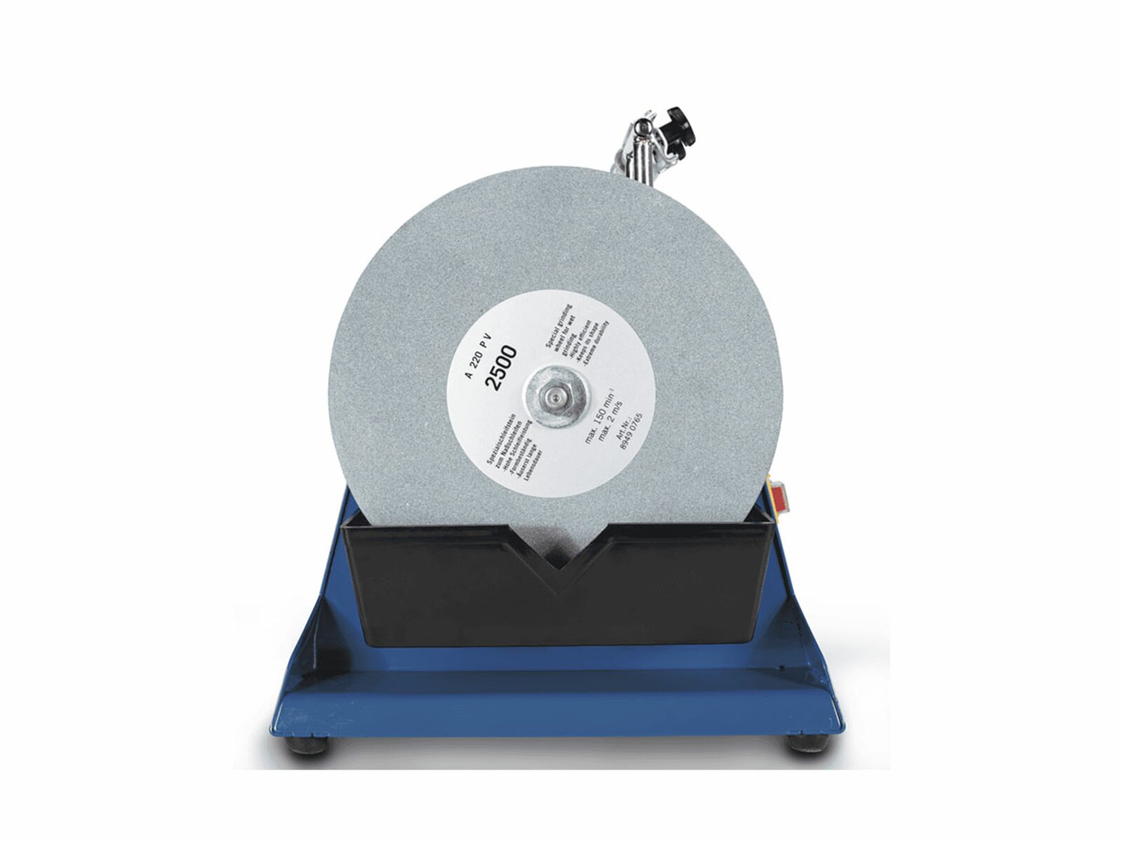 Beim Schleifen kann es immer mal wieder zu Oberflächenversätzen kommen, z.B. wenn ein schmales Werkzeug beim Schleifen nicht über die gesamte Breite des Steins bewegt wird. Um den Stein wieder zu glätten gibt es die Abdrehvorrichtung V 250, damit erhält man die perfekte Oberfläche des Schleifsteins zurück.