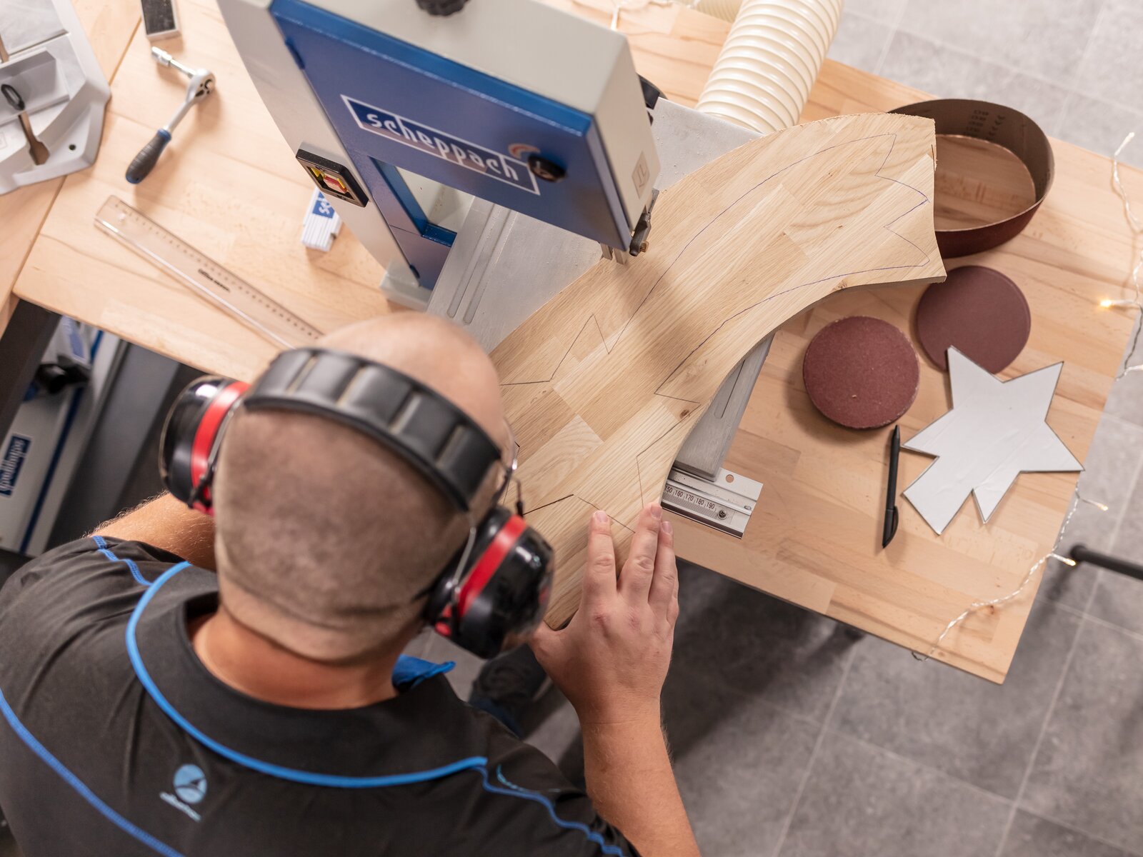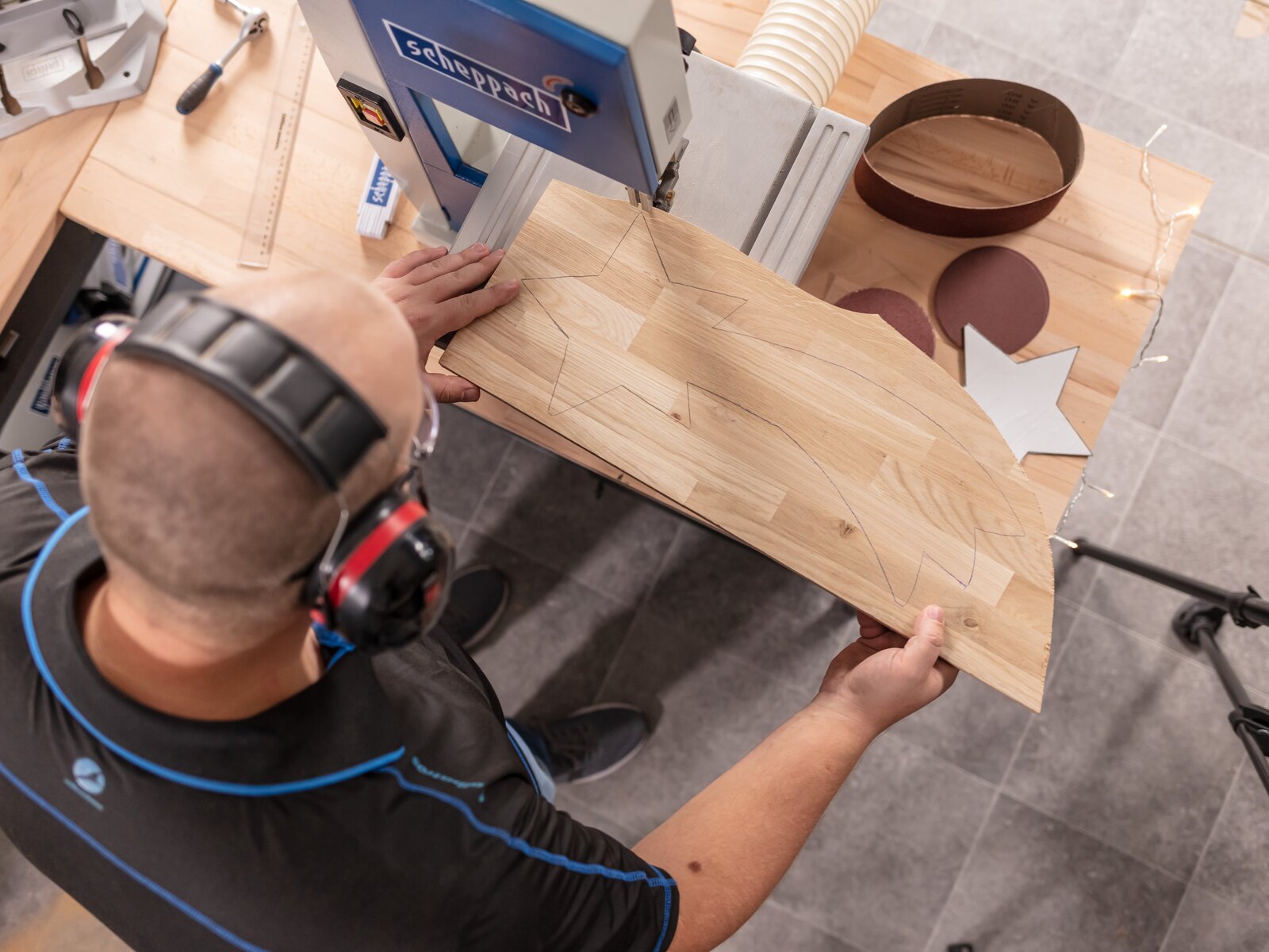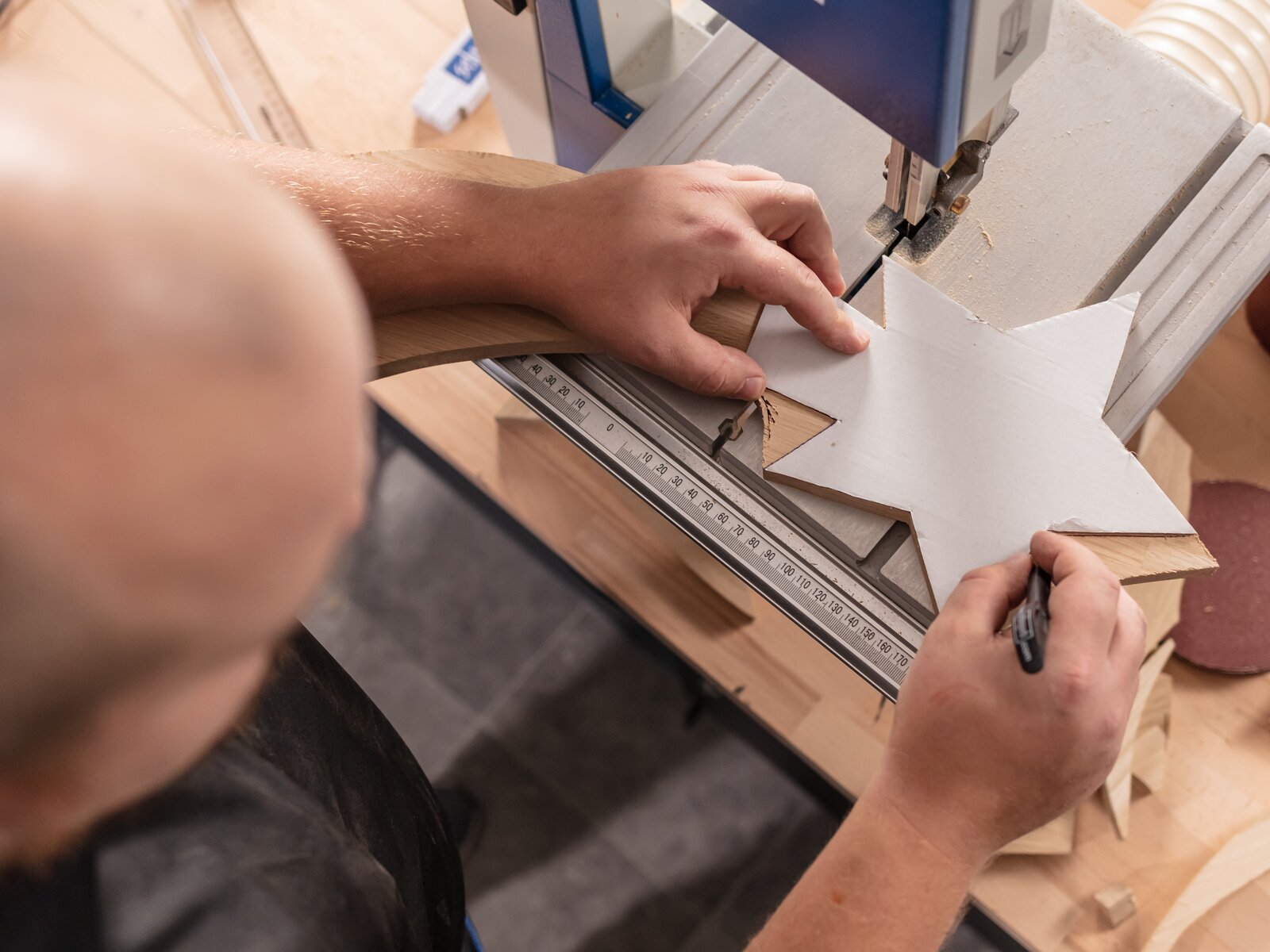 Jetzt kann die Sternschnuppe mit Hilfe einer Bandsäge, beispielsweise mit der Basa 1 oder der HBS261, ausgesägt werden.