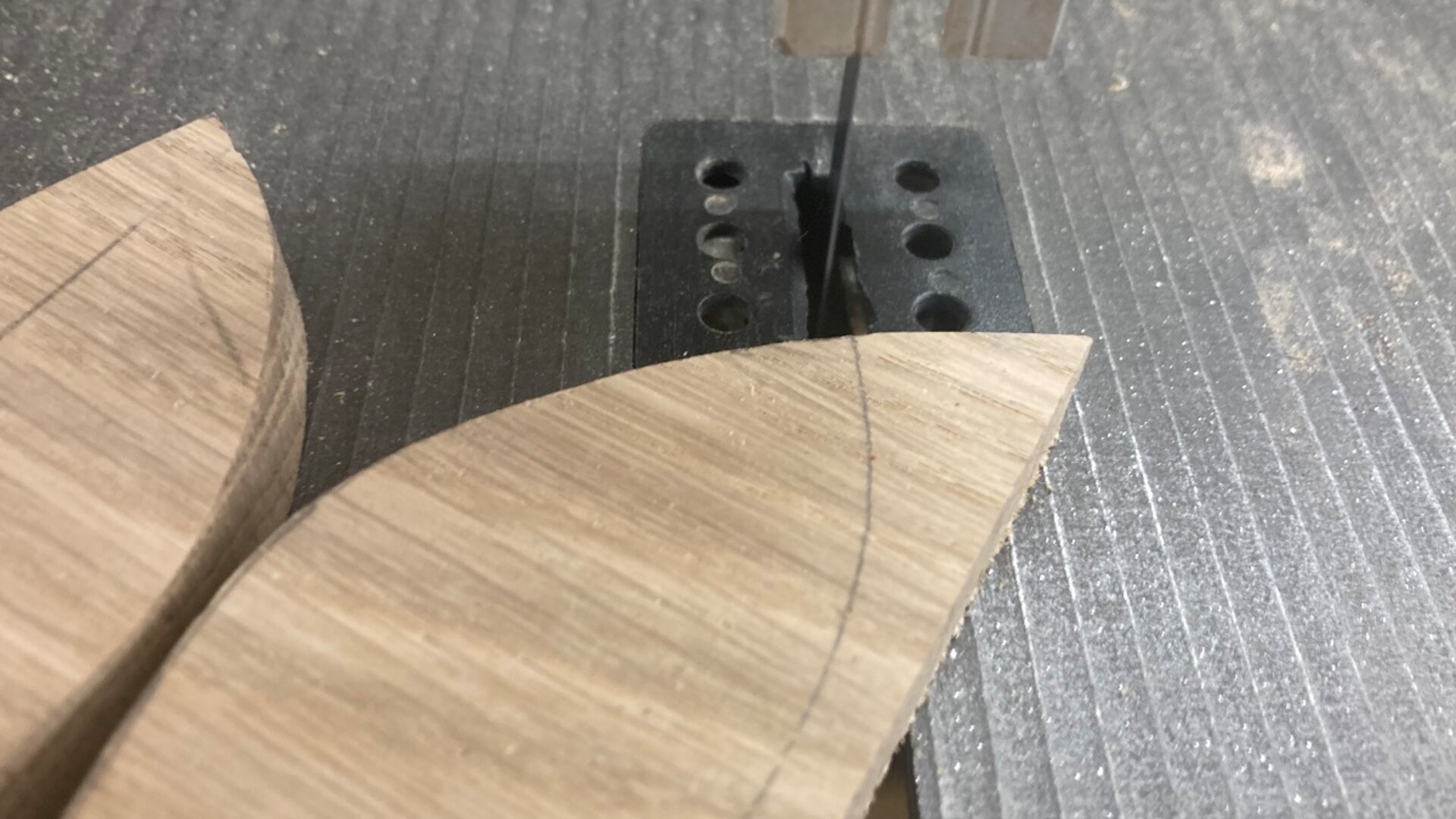 Découpez le gabarit et reportez-le autant de fois que nécessaire sur le bois à l’aide d’un stylo à bille. Découpez ensuite la forme avec la scie à ruban. Conseil : il est préférable de prendre son temps et de travailler avec minutie pour éviter un travail de reprise fastidieux.