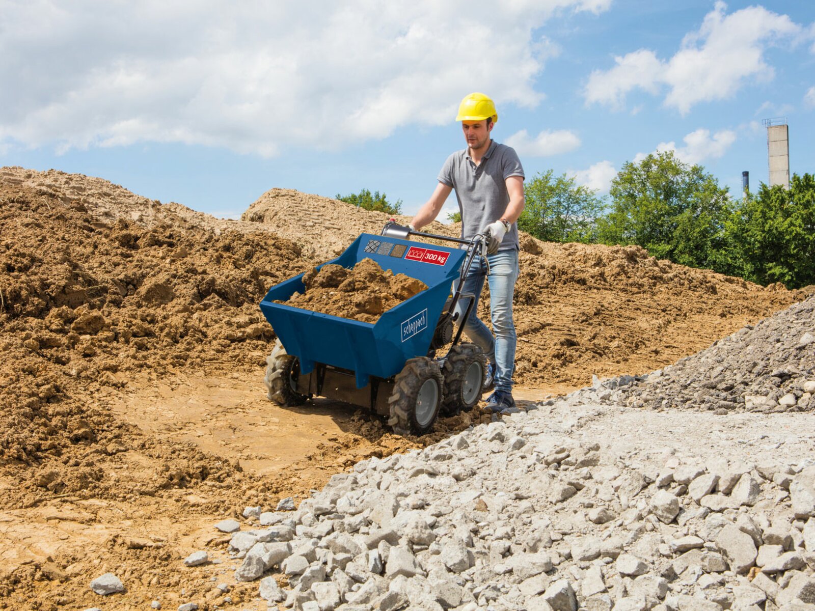 Que ce soient des palettes ou des matériaux en vrac, quand il faut transporter de lourdes charges, il est nécessaire de disposer d’un moyen adapté tel qu’un tire-palette, une brouette ou un « dumper » motorisé. Ce dernier est l’auxiliaire idéal sur un chantier, pour les travaux forestiers et agricoles ainsi que lors des travaux effectués dans le jardin ou par un paysagiste. Avec ce «dumper», le travail avance rapidement , même sur un sol glissant ou boueux.
